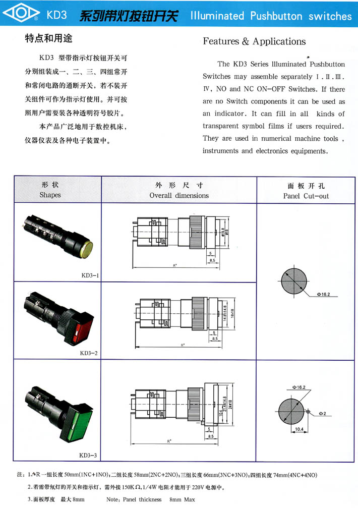 • KD3系列帶燈按鈕開 產(chǎn)品型號(hào):KD3系列帶燈按鈕開